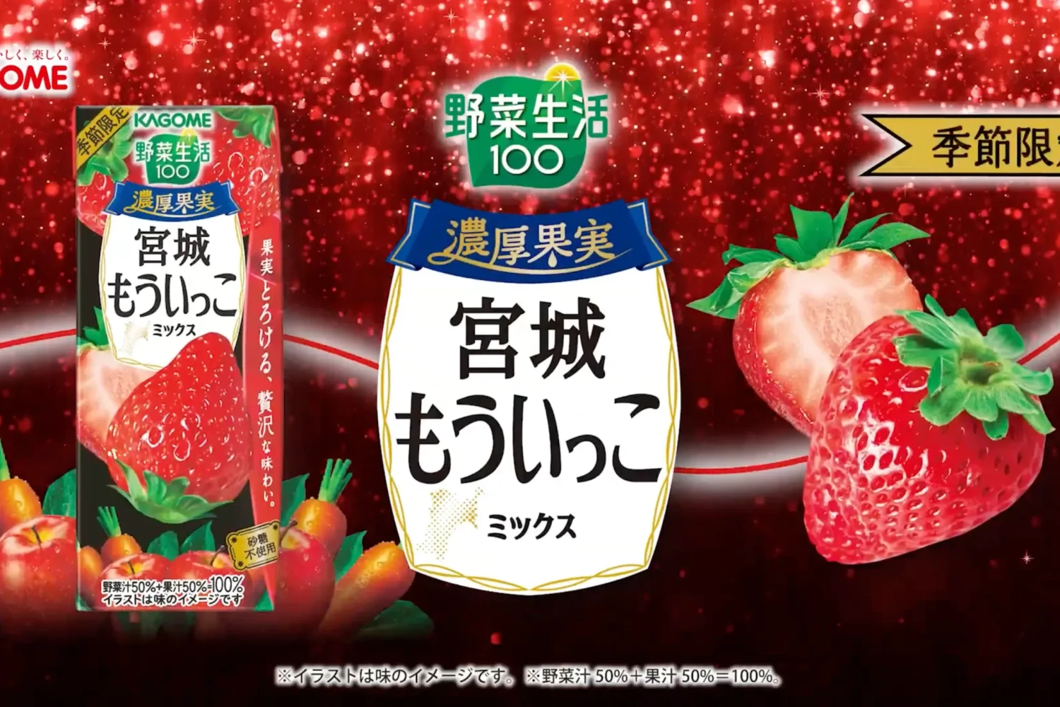 年間通しても、ほとんどお休みも無く、愛情を込めたイチゴで作る「野菜生活100 濃厚果実宮城もういっこミックス」は